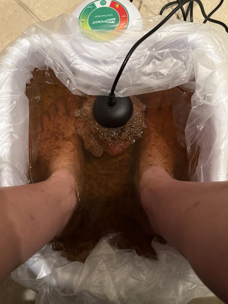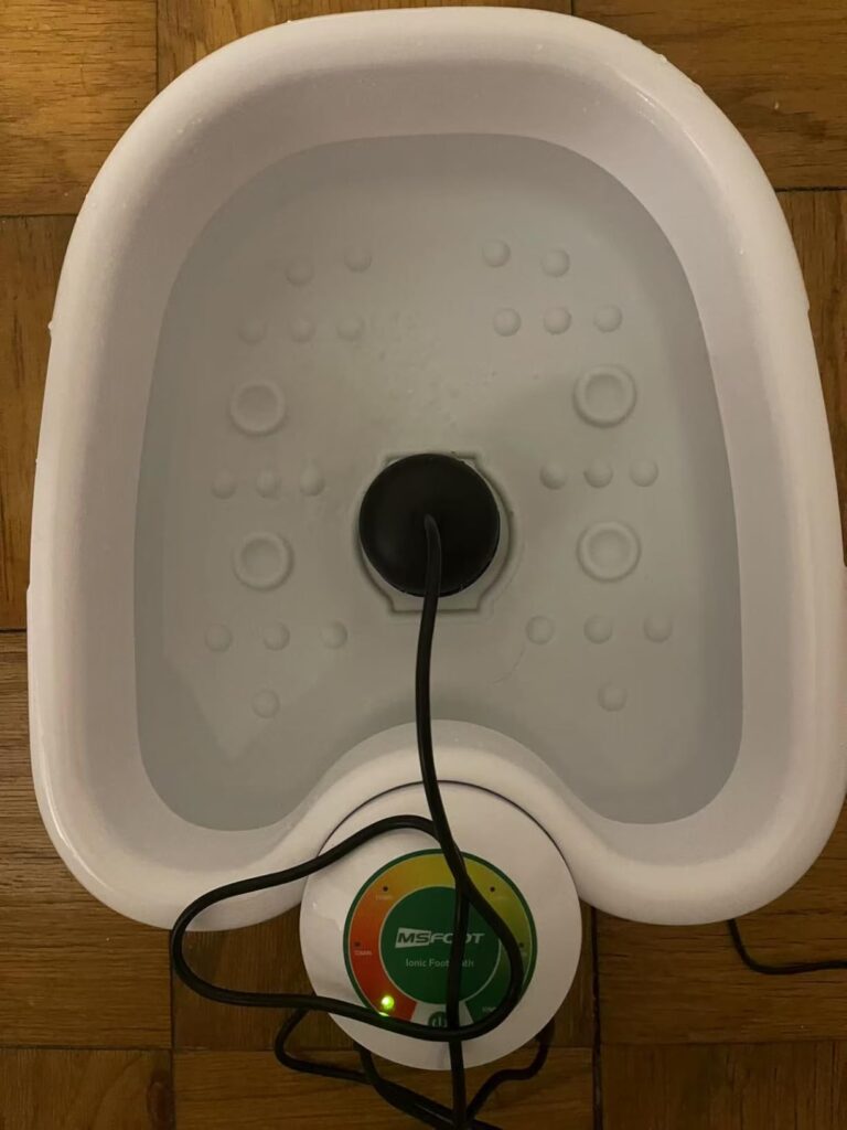 I bought this product as a recommendation from a holistic doctor who is prominent on social media as Dr. Rob He recommended this brand MSFOOT. So I bought this one specifically. I remember my friend buying something similar to this about 15 years ago and back then it was cutting edge technology, but she said she paid $2000 for it and she had to fly across the world to buy it. So I’m thinking this is a good deal. As a result, I noticed not only did I have orange, brown, black and dark green specs and white foam come out, but according to their health charts, it says that it was detoxifying my joints, detoxifing, my liver, gallbladder, mucus from my lymph & heavy metals. I was very surprised to see a shiny pieces of what look like aluminum in the basin So I’m pretty convinced now that despite what the Internet might say now that I’ve tried it on myself, I think it’s actually working and I’m going to bring it to my parents so they can try it themselves.
