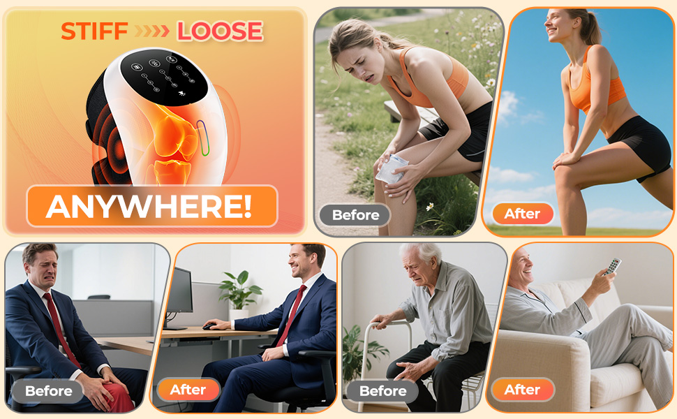 • 【The Knee Massager Breakthrough 1,800+ Users Asked For】 After hearing 1,800+ complaints about “weak vibration-only massagers,” we engineered the world’s first 360° kneading knee massager—with 4 airbags that mimic a therapist’s thumb movements to deliver true knee massager relief (not just vibration), full knee coverage, and deeper relaxation verified by real users